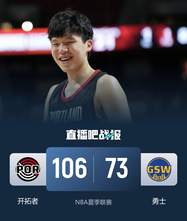 夏联-杨瀚森首秀10+4+5+1断+3帽 吕佩尔23+9 开拓者大胜勇士