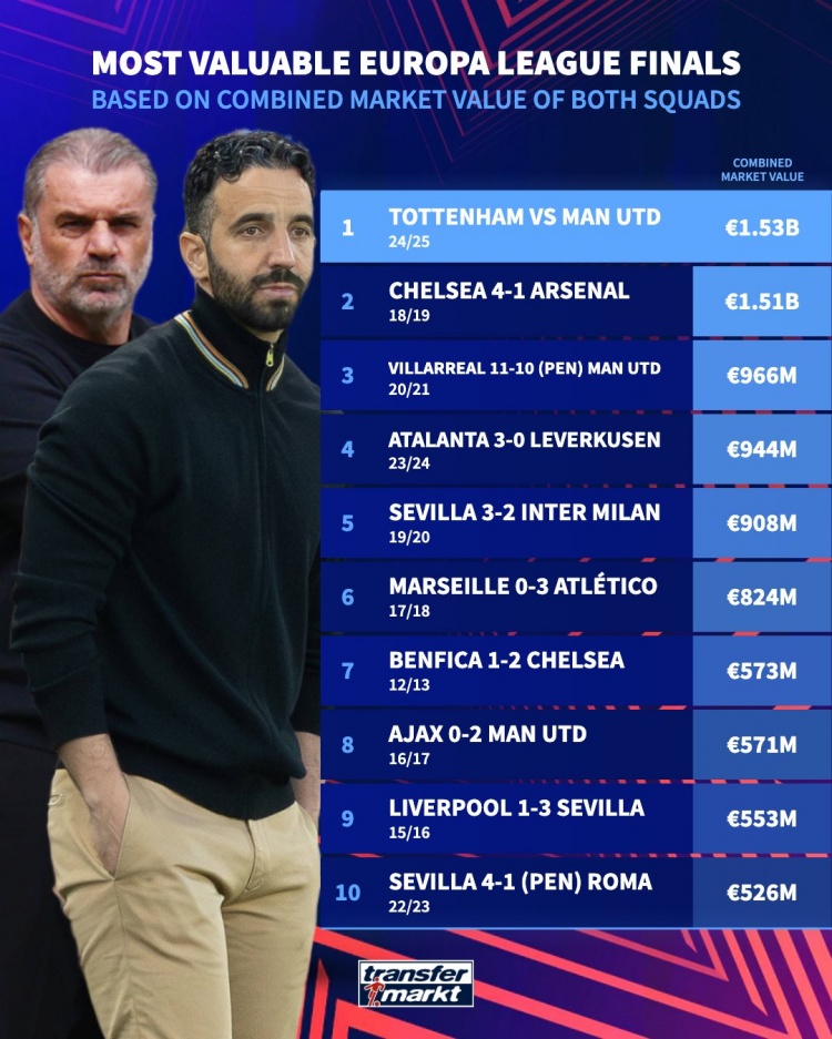 总身价15.3亿欧!热刺vs曼联成为身价最高的欧联决赛对阵