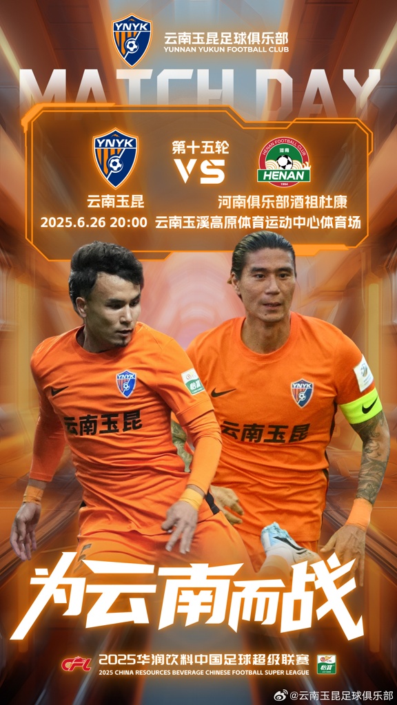 06月26日讯 20点中超第15轮,云南玉昆主场迎战河南队。