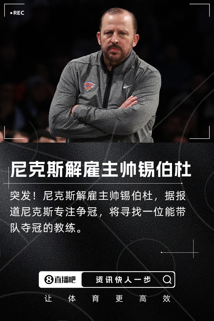 突发尼克斯解雇主帅锡伯杜!将专注于寻找能带队争冠的主帅