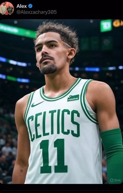 8月7日讯 亚特兰大老鹰队的控球后卫特雷-杨在社交媒体上点赞了一张自己身穿凯尔特人球衣的AI照片,这引发了热议。
