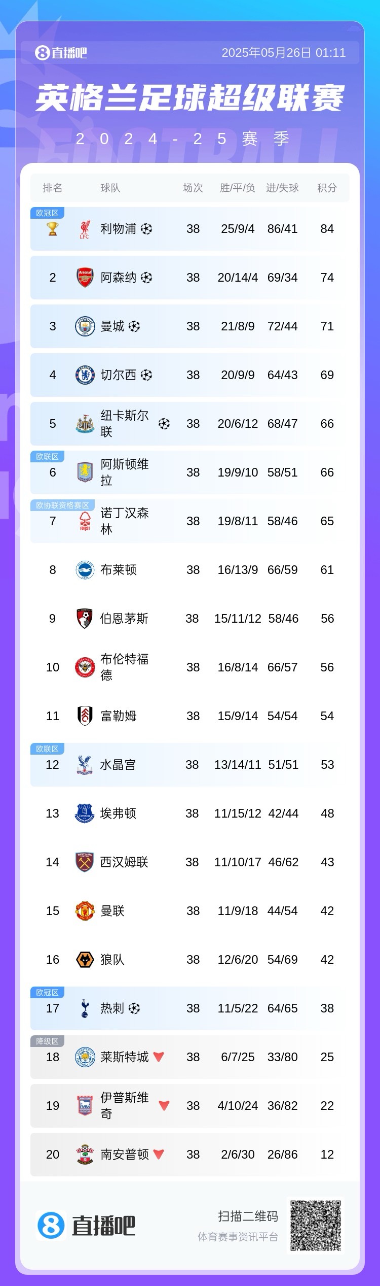 至此,下赛季的英超20支球队已全部确定。具体如下: