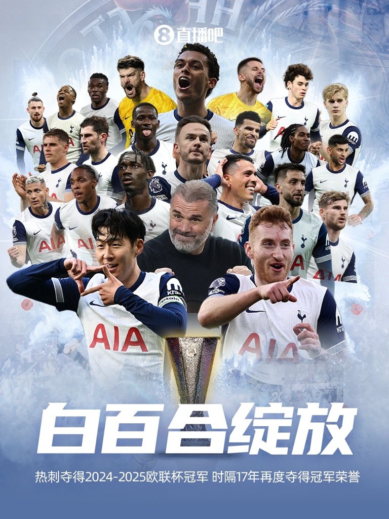 5月22日讯 欧联杯决赛,热刺击败曼联夺冠,热刺拿下25/26赛季的欧冠资格,成为下赛季英超第6支参加欧冠的队伍!